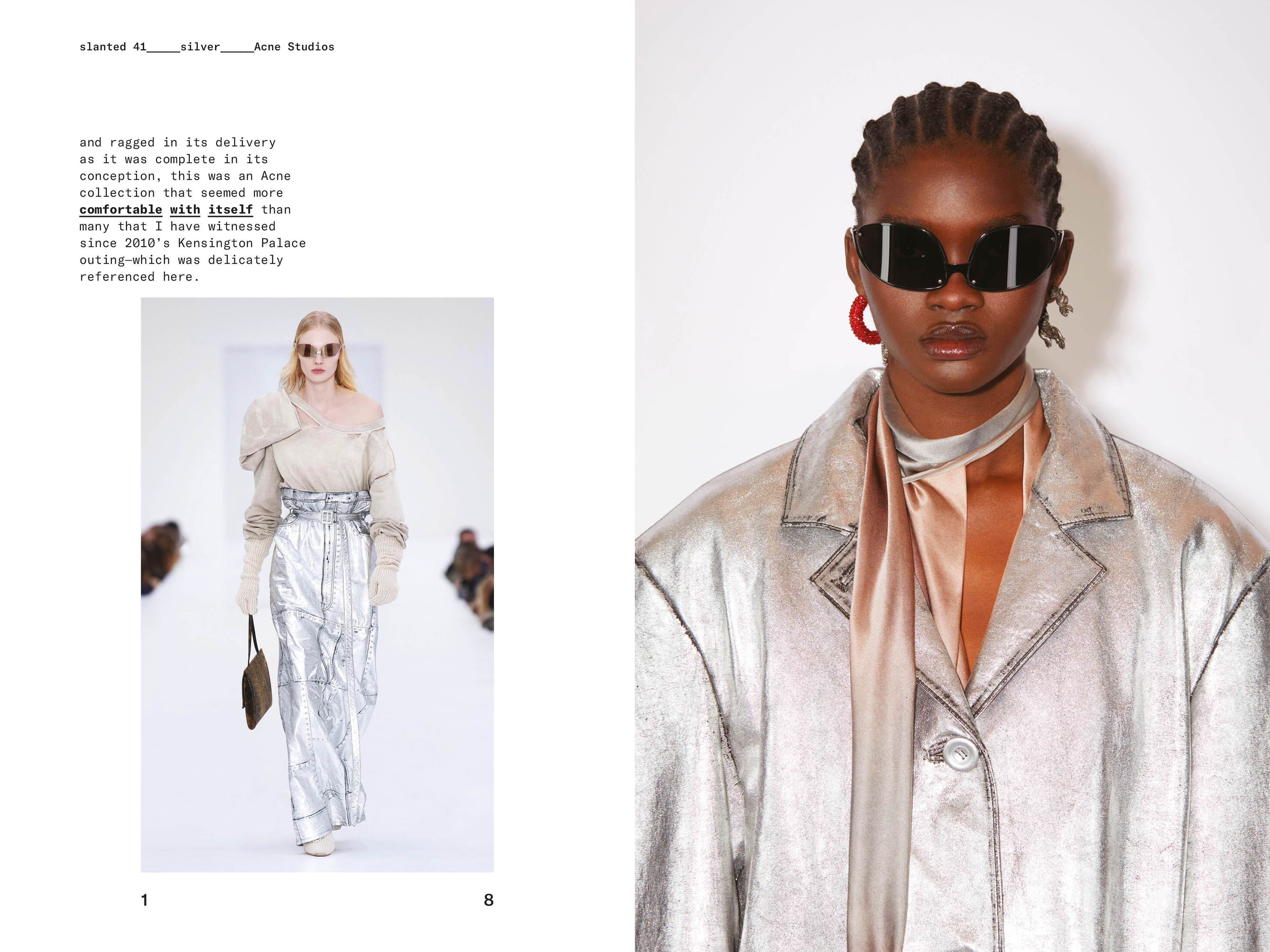 Its aim is to reimagine and redesign a version of Slanted magazine, focusing on the theme of silver—exploring its significance in fashion, branding, and its fusion as both an artistic product and a key element in clothing design.